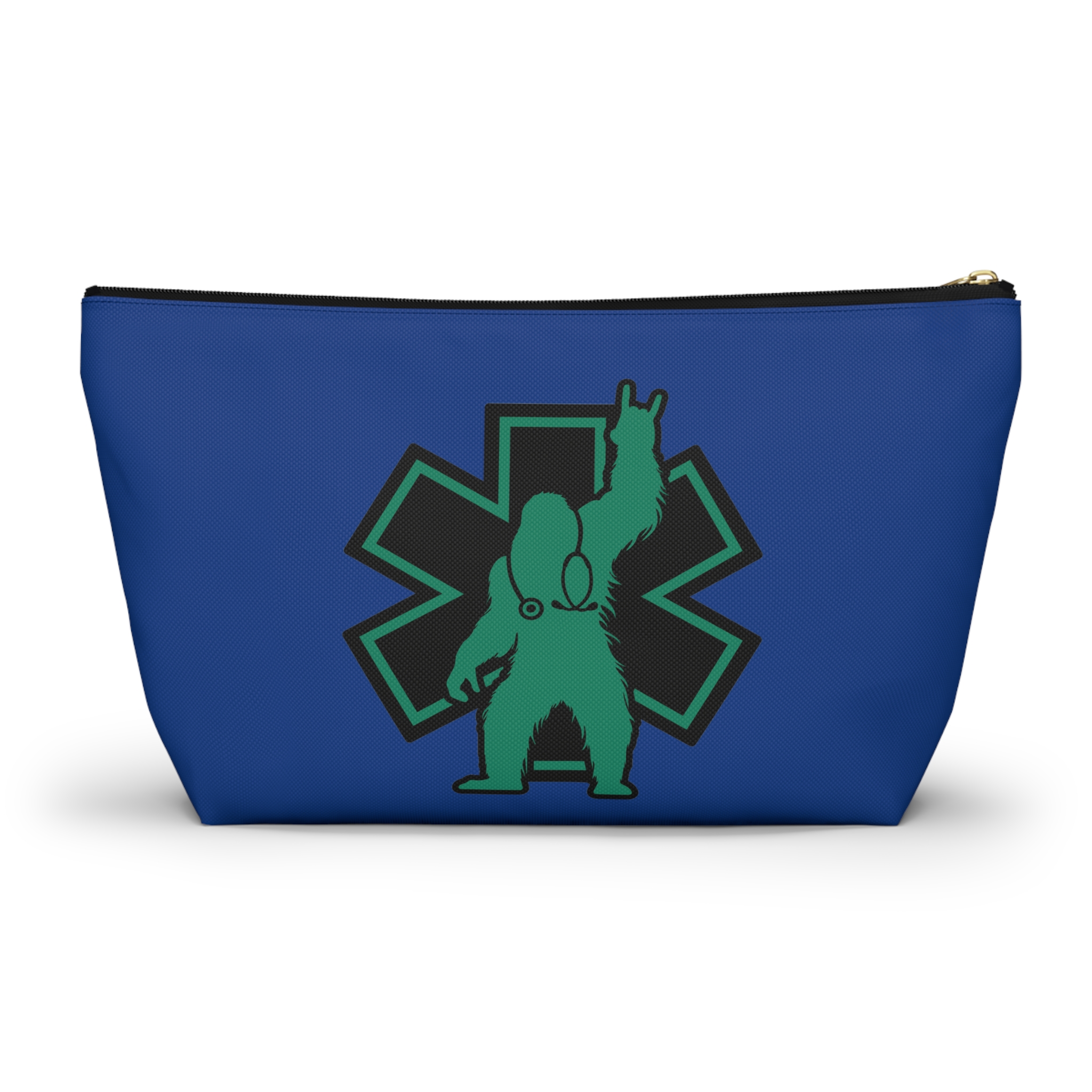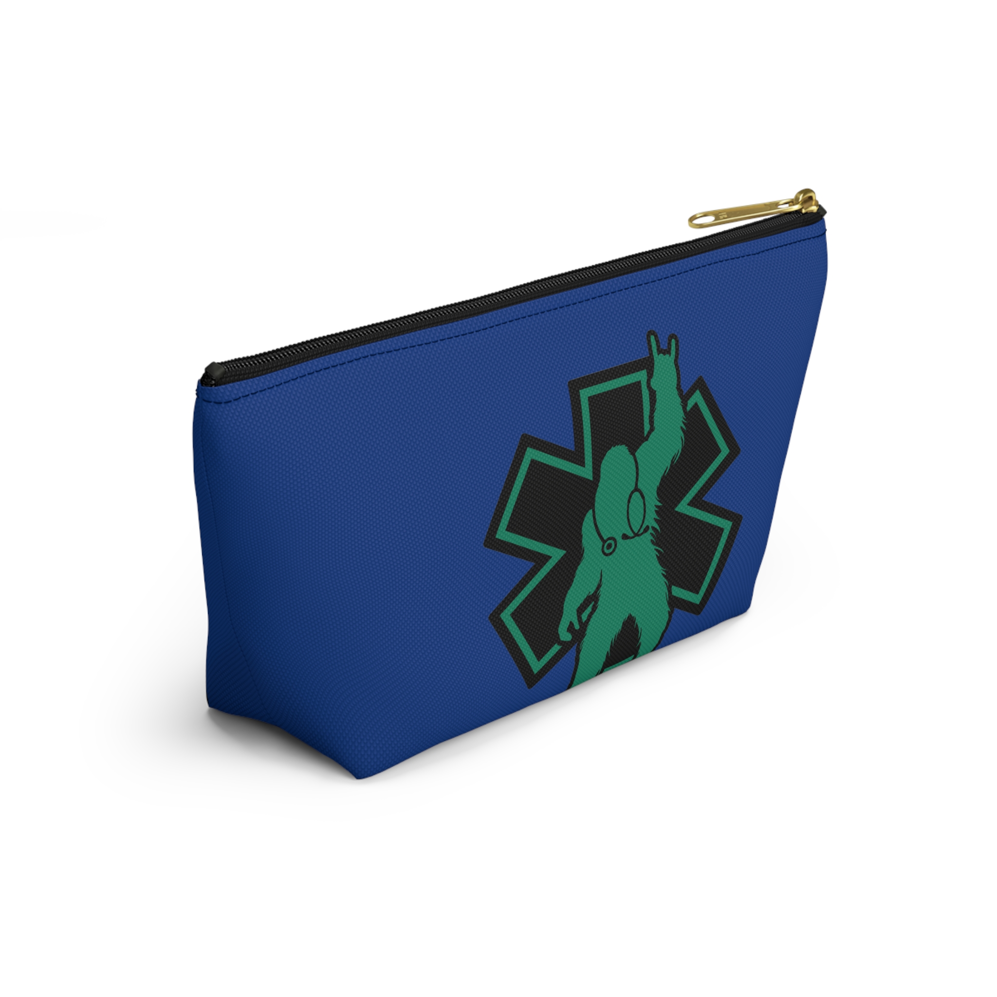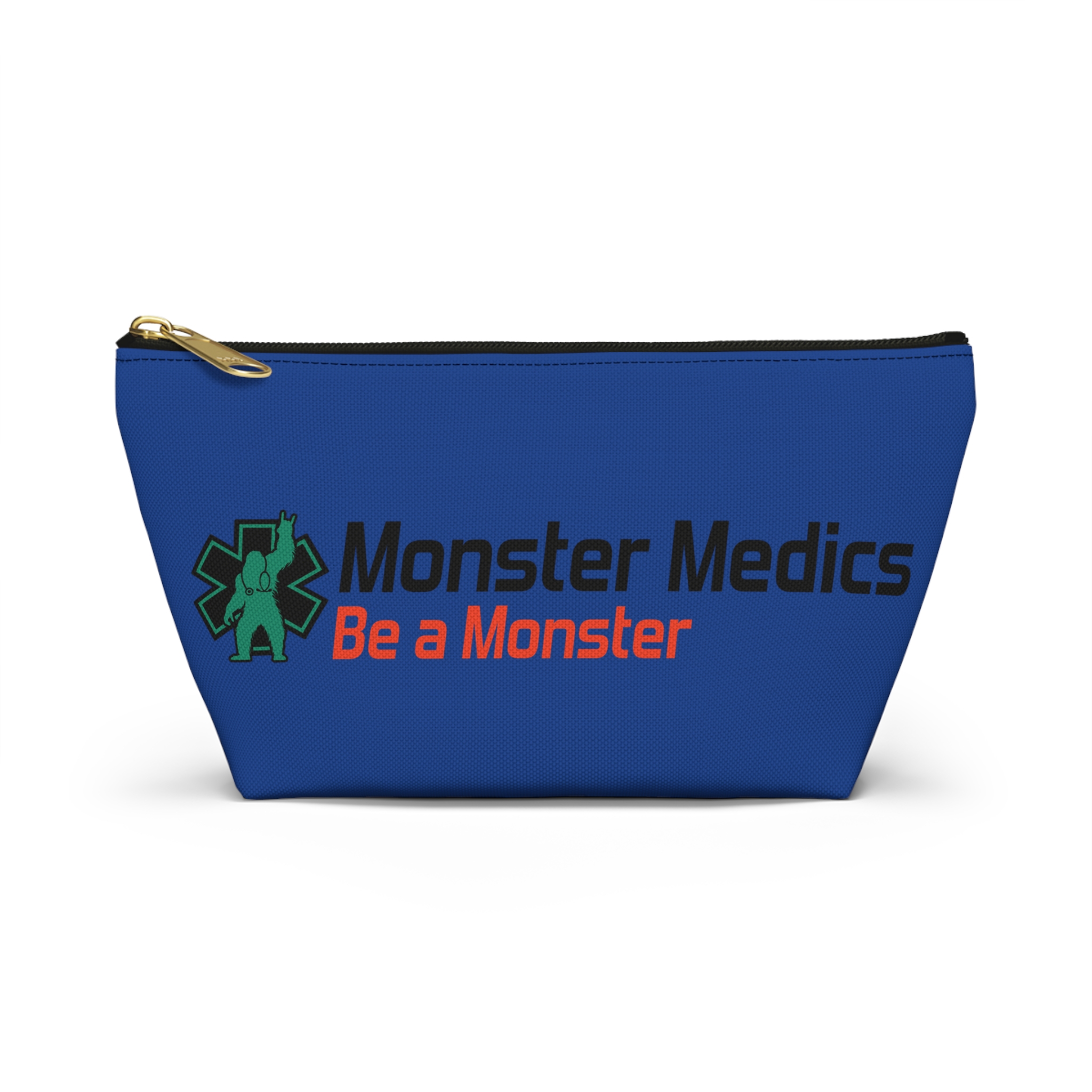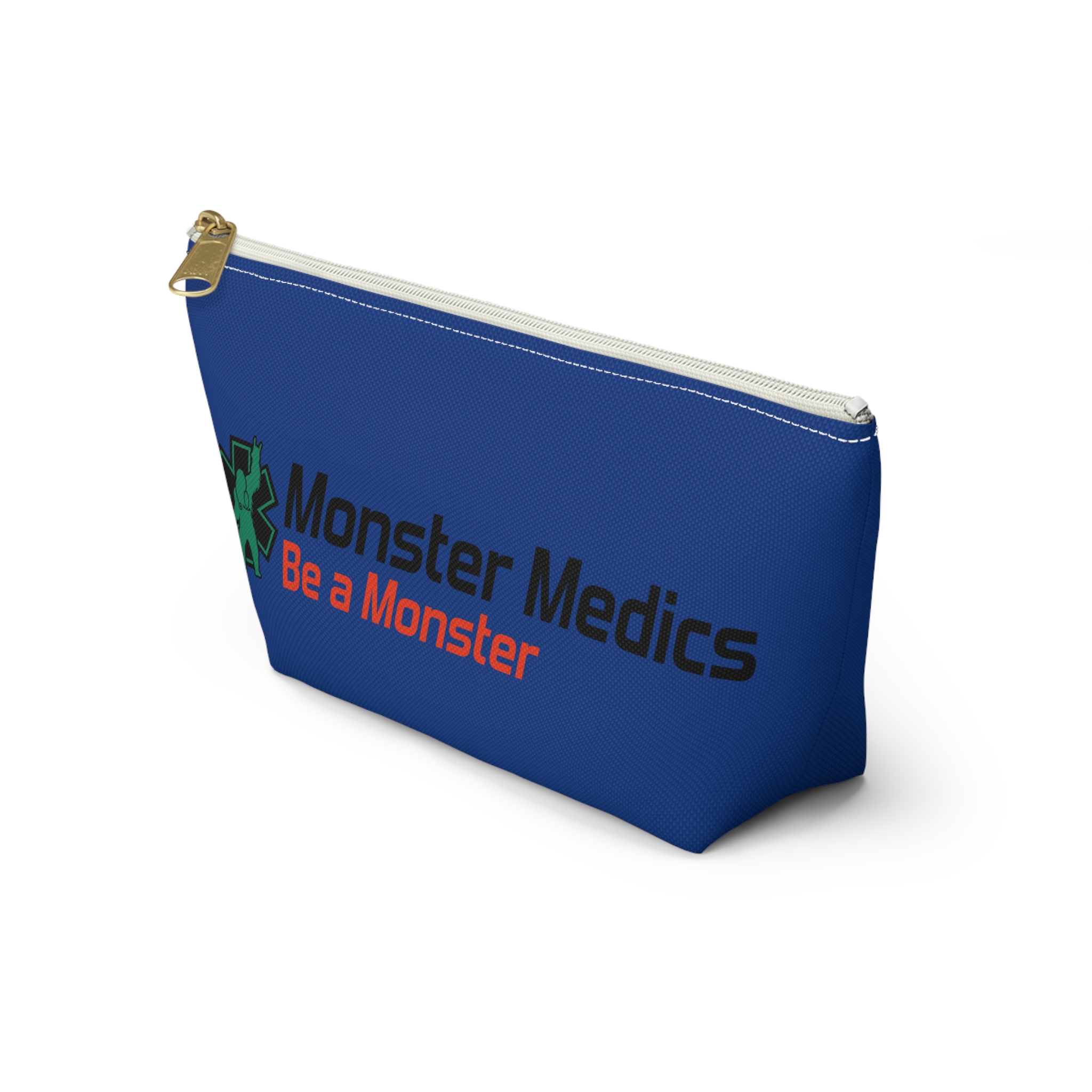 A roomy, structured accessory pouch that carries your everyday essentials with a playful, heroic edge. The bold blue fabric and crisp, high-contrast print celebrate the “Monster Medics” motif — a green, stethoscope-wearing creature framed by an emergency star and the rallying line “Be a Monster.” It’s light, stays shapely thanks to spun polyester, and closes with a matching zipper and gold puller so small items stay secure. Toss it into a work bag or keep it on your counter as a functional, characterful catchall that nods to first responders and night-shift lifesavers who like a little irreverence in their gear.